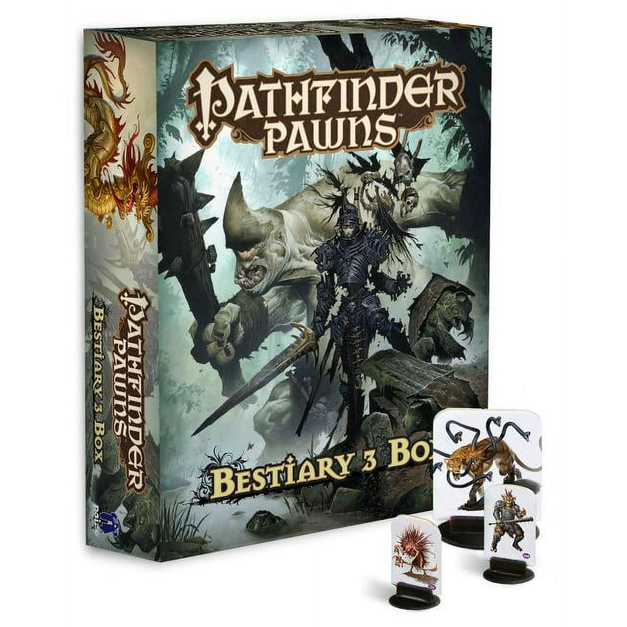 I am not pulling out a library of Pathfinder 1e books; I have the PDFs, and those are just reference. To be honest, Pathfinder is just the "look and feel" of the world, serving as "generic fantasy pawns" so I can play the game the way I want. Granted, I likely have more monsters than I will ever use, more shapes than I could ever create stats for, and unless I limit this down to a core set of pawns, it will overwhelm me quickly with just the ones I have out from the Beginner Box.